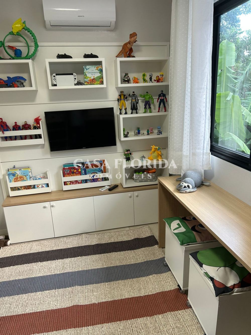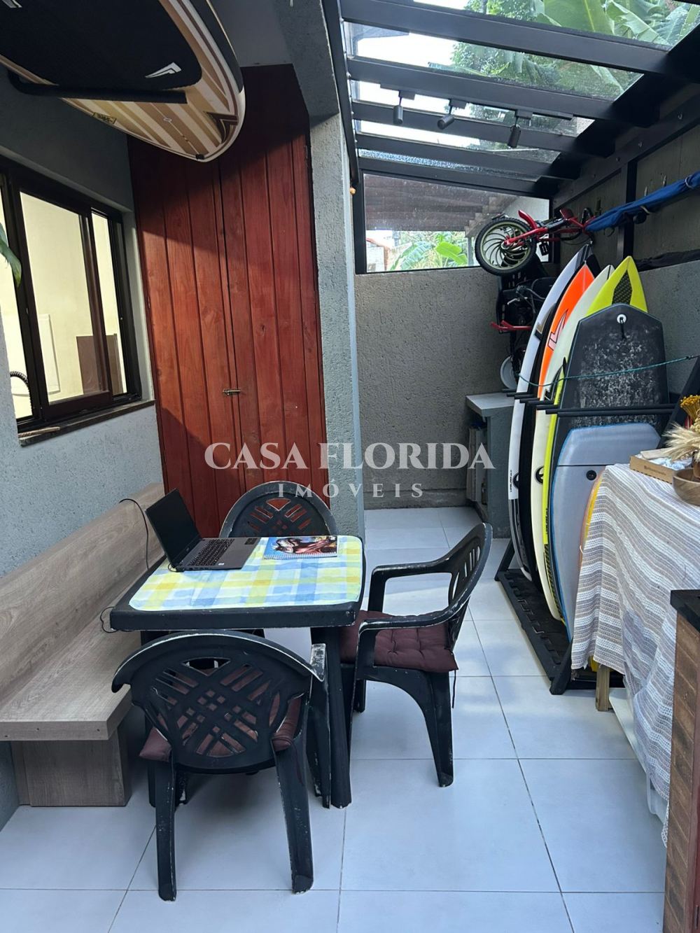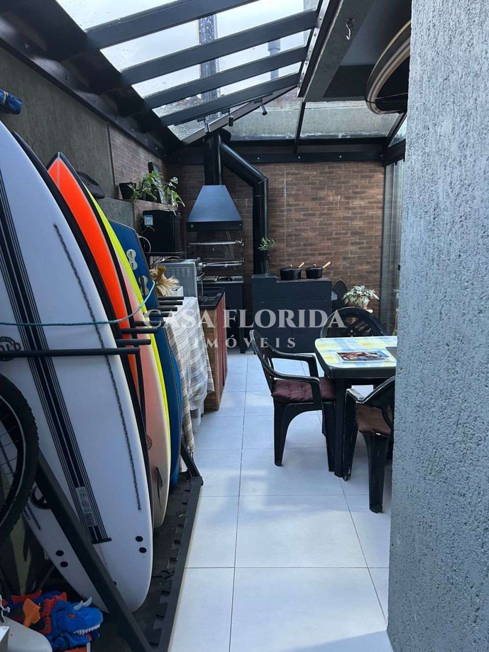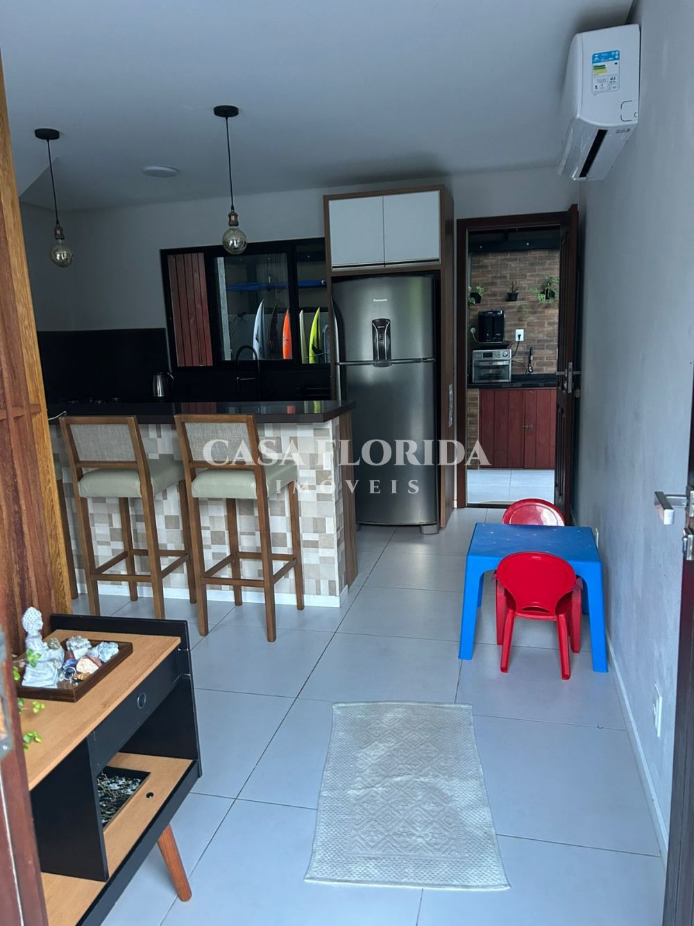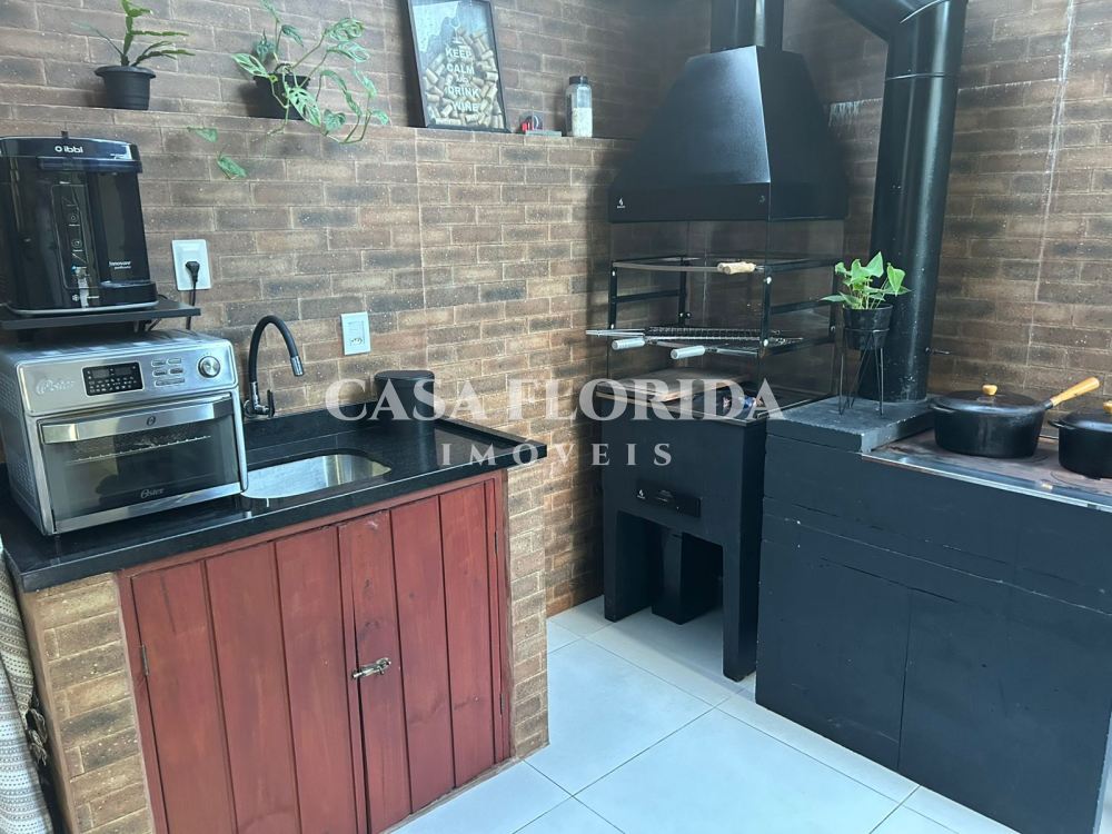 Casa com 2 quartos, 1 sacada, 1 banheiro, 1 lavabo, área gourmet com pia, churrasqueira e fogão a lenha, cozinha e sala integradas, lavanderia e garagem para até 2 carros pequenos. Móveis planejados em todos os ambientes e 3 aparelhos de ar-condicionado.